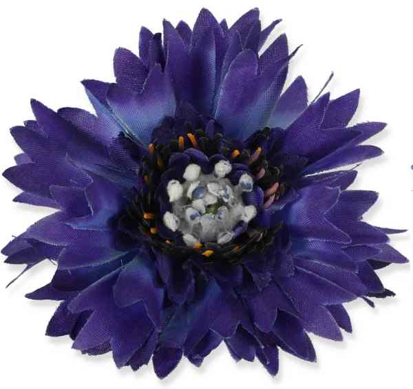 Dekoracyjna główka chabra wykonana z lekko usztywnianego materiału, który zapewnia trwałość oraz estetyczny wygląd. Każdy płatek został starannie przygotowany i elegancko karbowany, dzięki czemu kwiat prezentuje się niezwykle realistycznie.