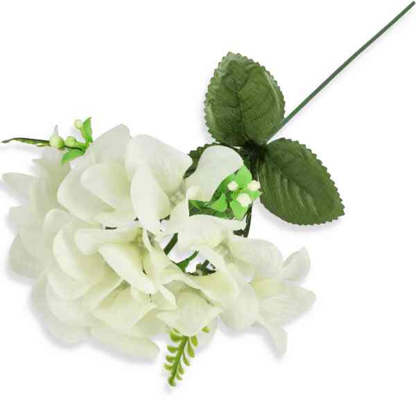Elegancka gałązka hortensji z jednym, efektownym kwiatem to doskonały element dekoracyjny do różnego rodzaju kompozycji florystycznych. Kwiat wykonany jest z lekko usztywnianego materiału, co zapewnia trwałość oraz estetyczny wygląd.