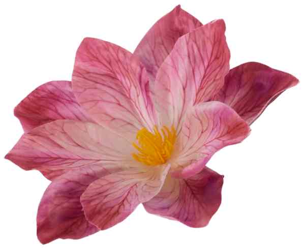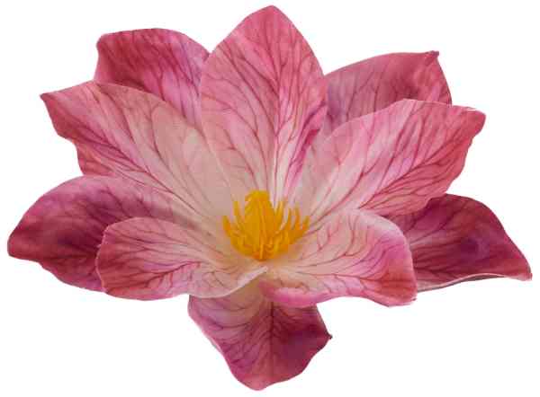 Elegancka i niezwykle realistyczna główka klematisa, wykonana z wysokiej jakości, usztywnianego materiału, który wiernie oddaje naturalną strukturę płatków. Każdy detal został dopracowany z wyjątkową starannością – płatki są delikatnie karbowane, pełne i przyjemnie mięsiste, a subtelne cieniowanie nadaje całości głębi oraz autentycznego charakteru.