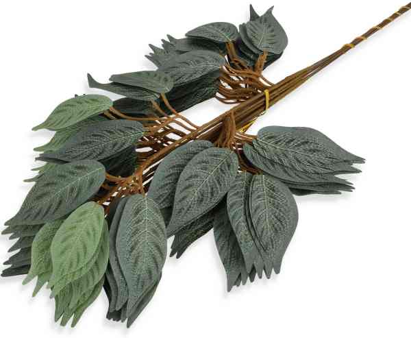 Dodaj swojemu wnętrzu odrobinę naturalnej elegancji dzięki realistycznej gałązce liści fikusa. Starannie wykonana z wysokiej jakości materiału, zachwyca dopracowanymi detalami i subtelnym wykończeniem, które wiernie oddaje wygląd żywej rośliny.