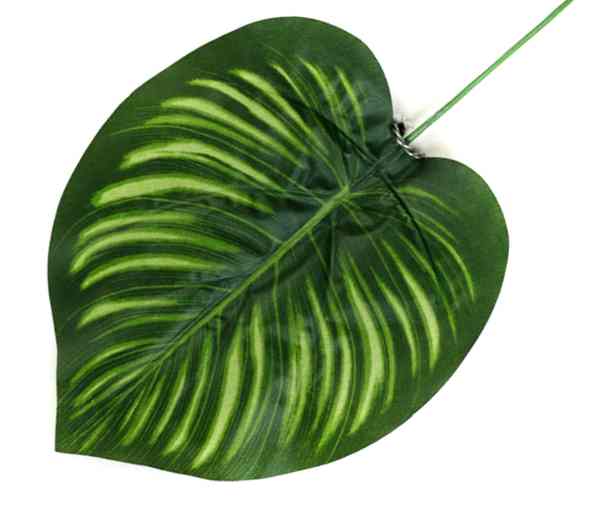 Liść został wykonany z wysokiej jakości tkaniny syntetycznej, z dbałością o realistyczne odwzorowanie detali. Subtelne cieniowanie oraz jaśniejsze refleksy nadają mu głębi i naturalnego wyglądu, dzięki czemu całość prezentuje się świeżo i bardzo estetycznie. Wyraźne użyłkowanie oraz lekko zaokrąglony kształt dodatkowo podkreślają autentyczny charakter rośliny.