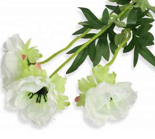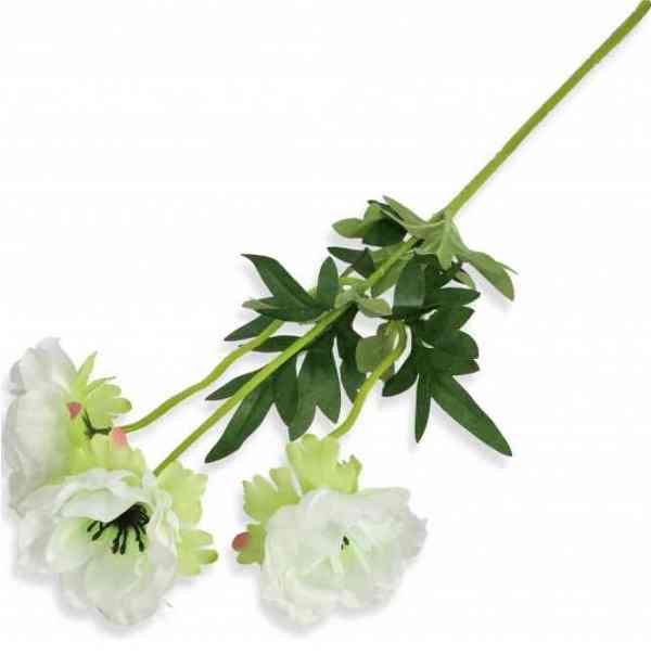 Estetyczna, sztuczna gałązka anemonu o naturalnym wyglądzie, idealna do dekoracji wnętrz oraz kompozycji florystycznych. Doskonale sprawdzi się zarówno jako element bukietu, jak i samodzielna ozdoba w wazonie.