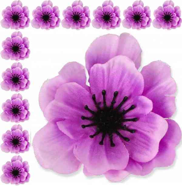 Dekoracyjna główka kwiatowa typu Mak Anemon, wyróżniająca się bardzo realistycznym wyglądem i wysoką estetyką wykonania. Doskonała do tworzenia kompozycji florystycznych, wianków, stroików oraz dekoracji typu handmade.