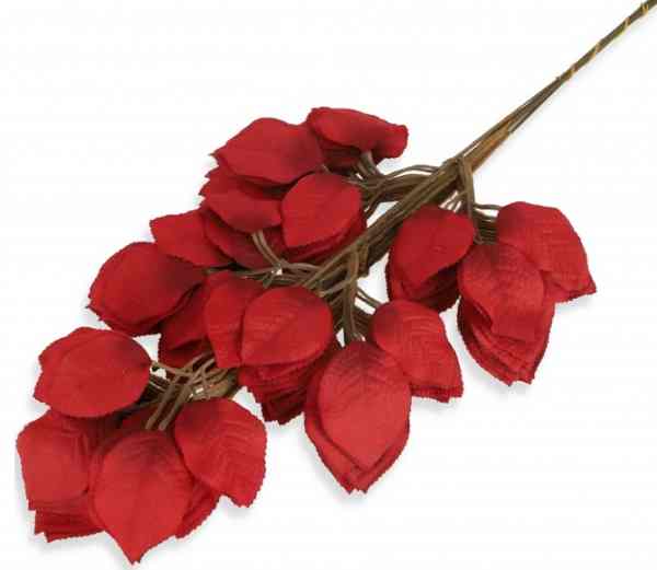 Ładnie wykonana gałązka sztucznego liścia róży. Każda gałązka składa się z pięciu potrójnych gałązek.