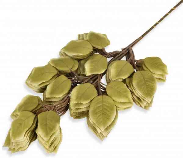 Ładnie wykonana gałązka sztucznego liścia róży. Każda gałązka składa się z pięciu potrójnych gałązek.