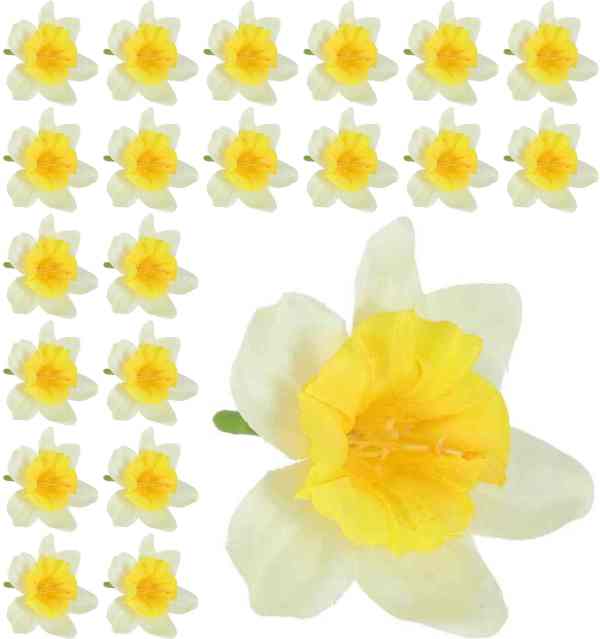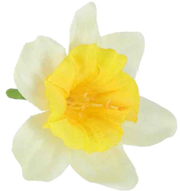Dekoracyjna główka żonkila w wersji mini, wykonana z wysokiej jakości, lekko usztywnianego materiału. Starannie przygotowane płatki są delikatnie karbowane, co nadaje kwiatom naturalny i elegancki wygląd.