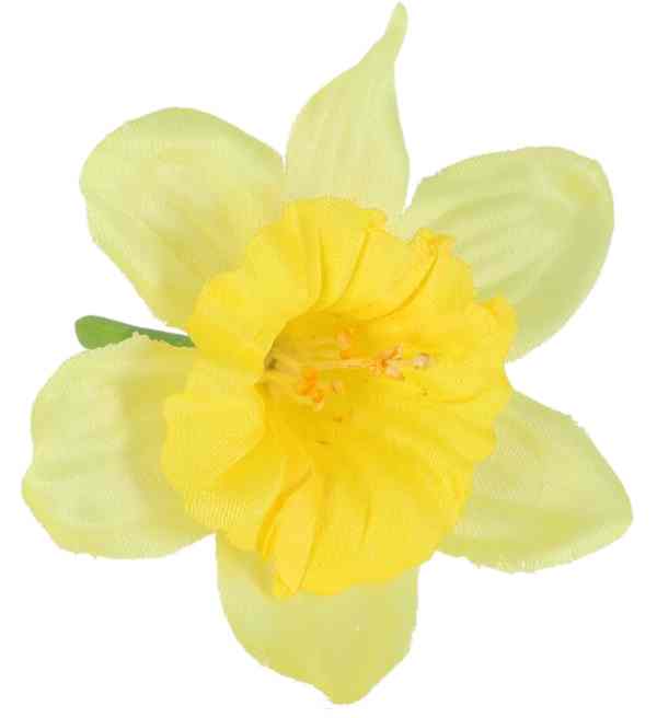 Dekoracyjna główka żonkila w wersji mini, wykonana z wysokiej jakości, lekko usztywnianego materiału. Starannie przygotowane płatki są delikatnie karbowane, co nadaje kwiatom naturalny i elegancki wygląd.