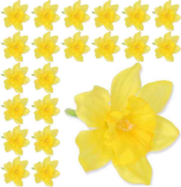 Dekoracyjna główka żonkila w wersji mini, wykonana z wysokiej jakości, lekko usztywnianego materiału. Starannie przygotowane płatki są delikatnie karbowane, co nadaje kwiatom naturalny i elegancki wygląd.
